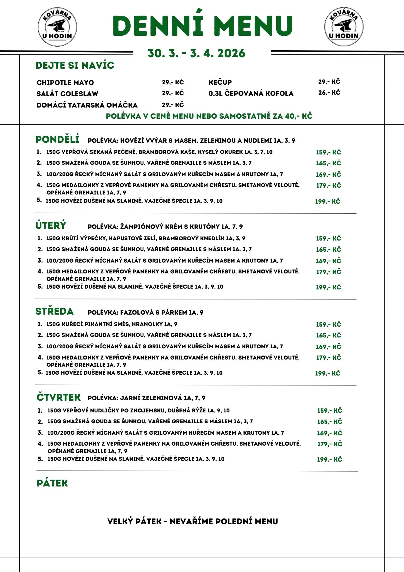 St - Čt (11:00 - 15:00) 180,-